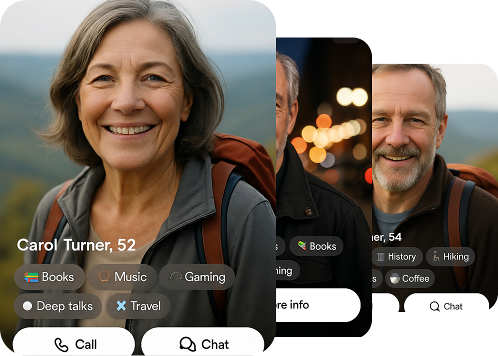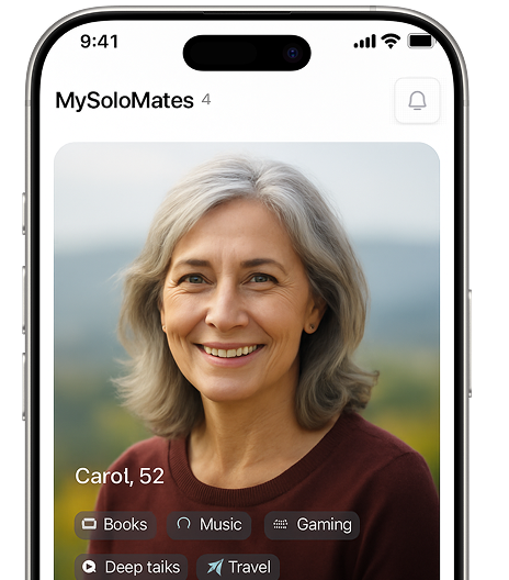 Talk about the things that matter—family, sports, books, gardening, travel. SoloMate learns your interests so every conversation feels natural and meaningful.